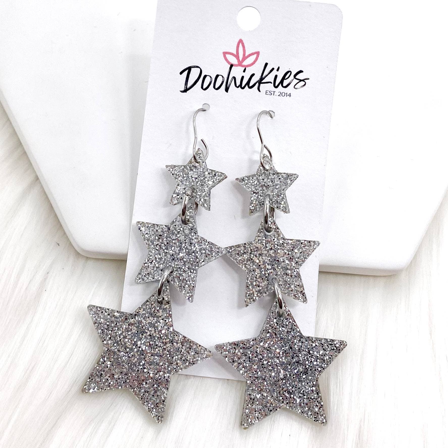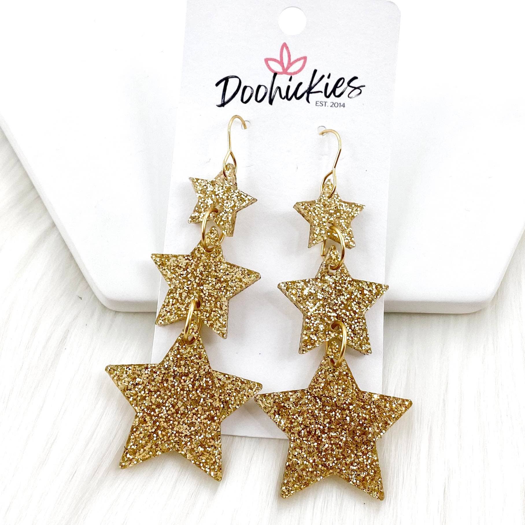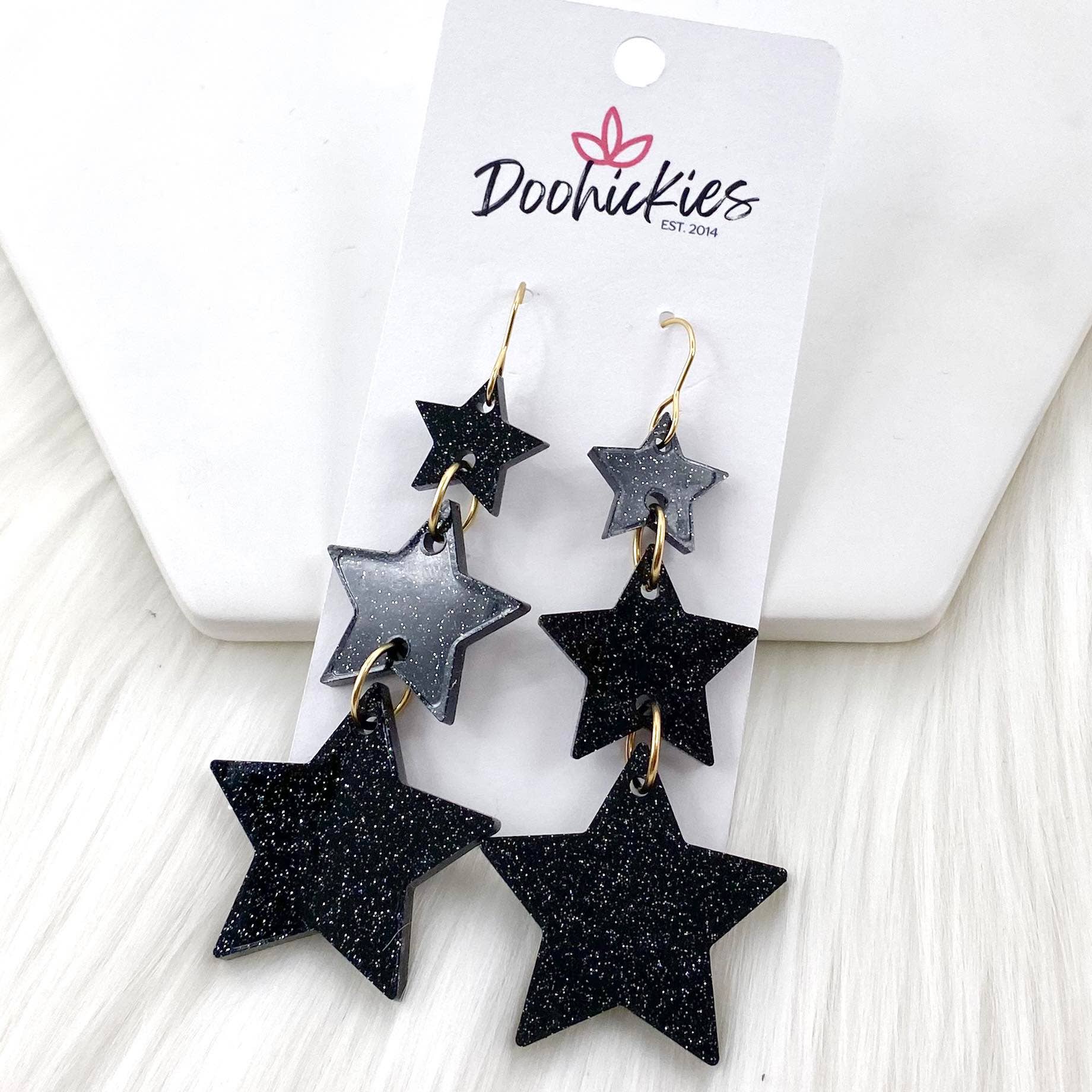 3.25" Lucky Star Waterfall Drops -New Years Acrylic Earrings: Glitter Black