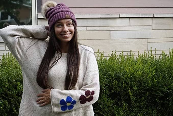 GREAT QUALITY: This durable pompom beanie is made from 100% super soft knit acrylic. Hand wash cold. Lay out to dry.