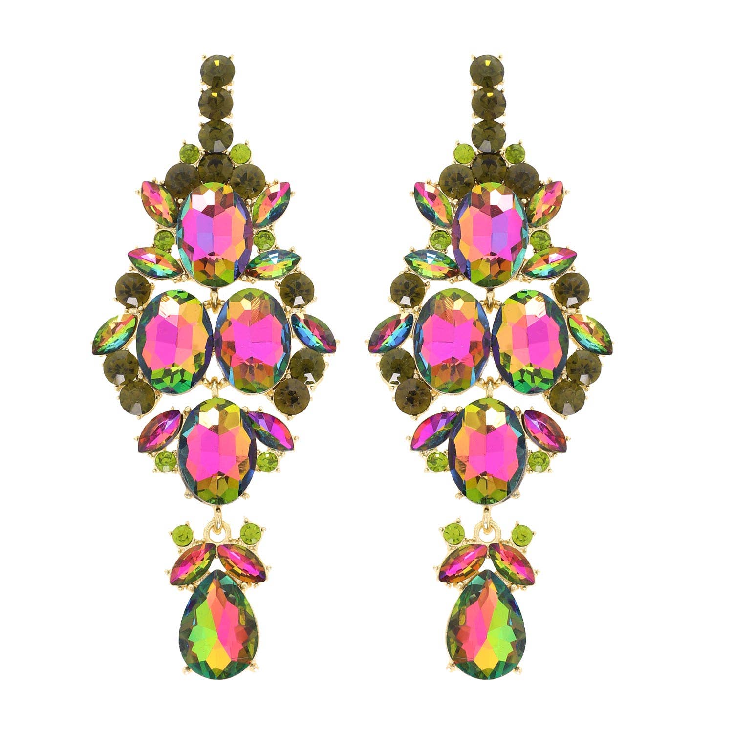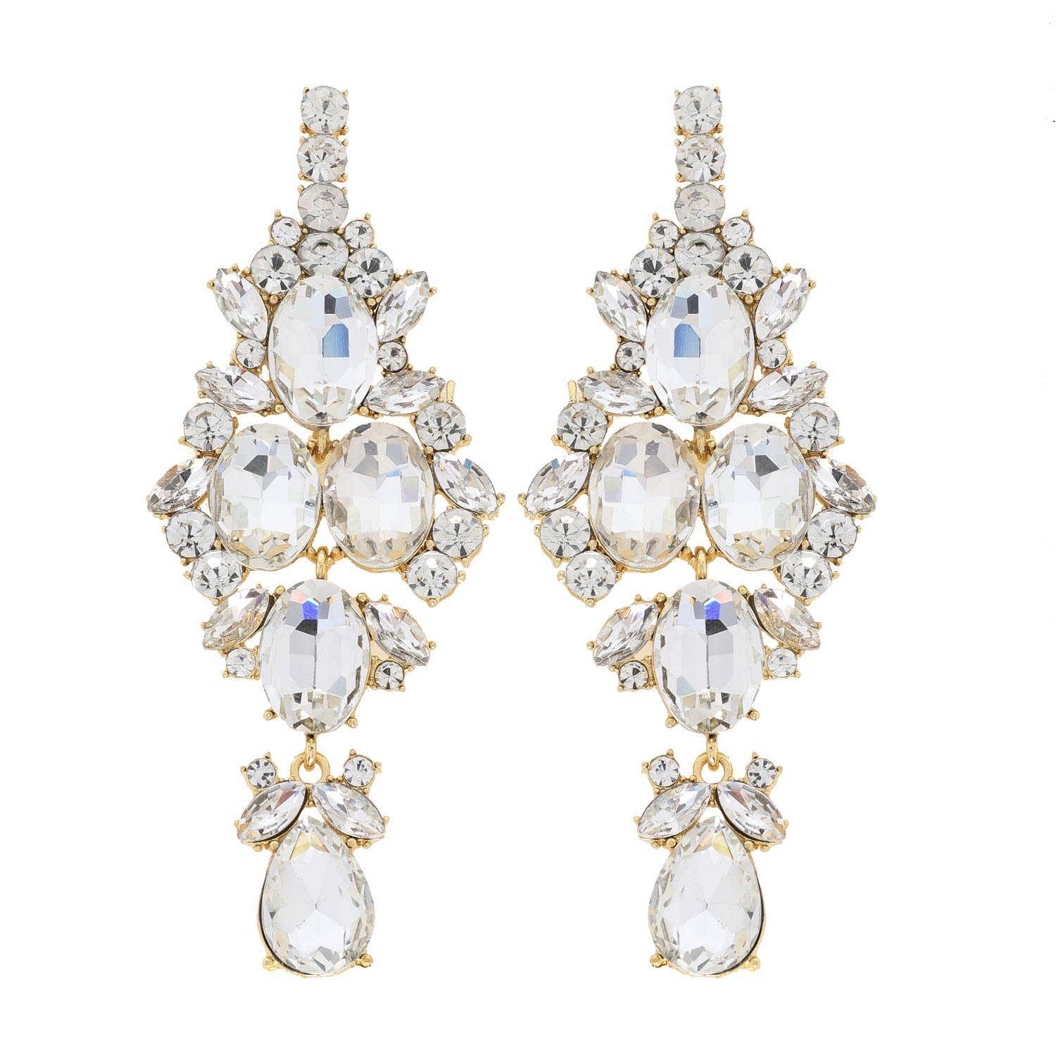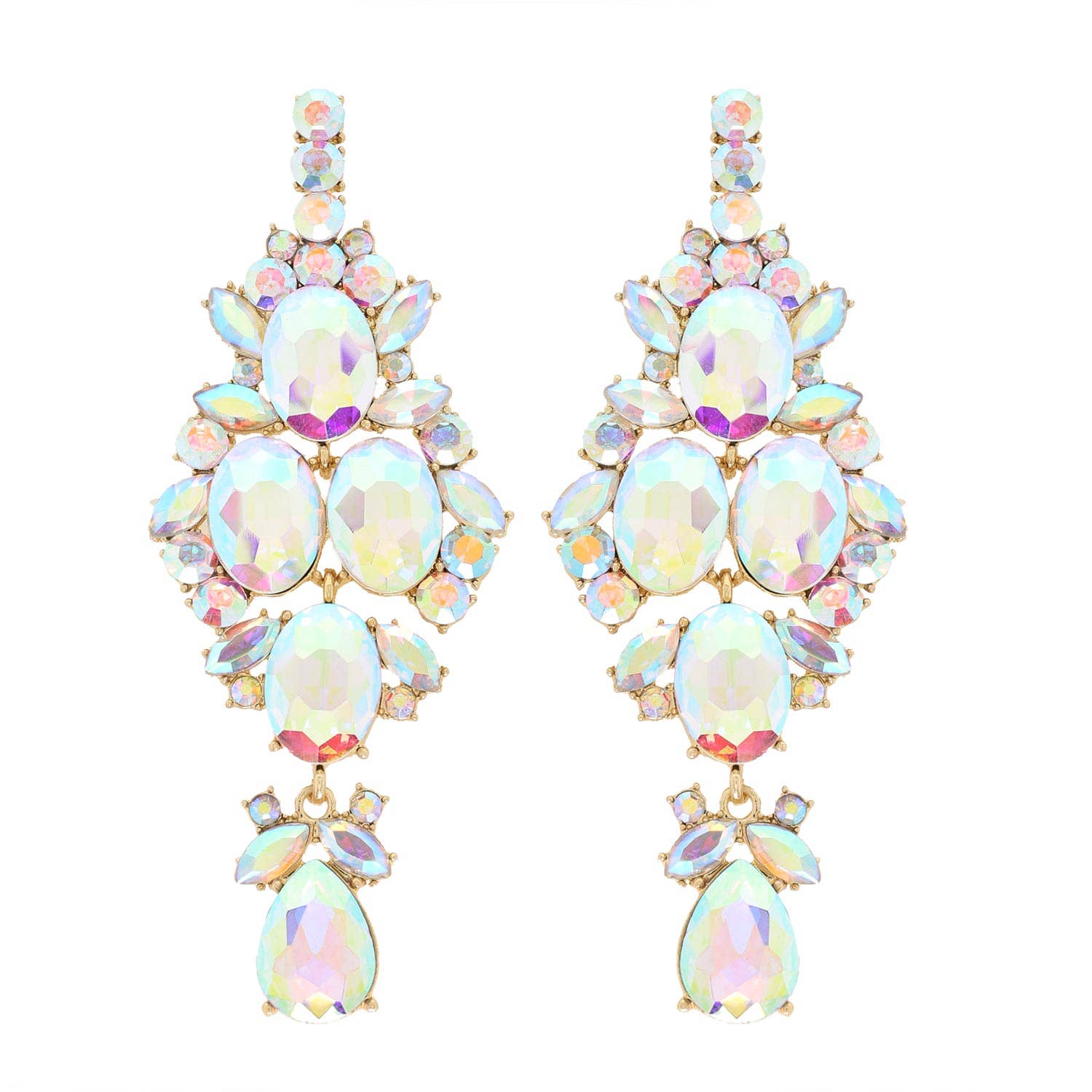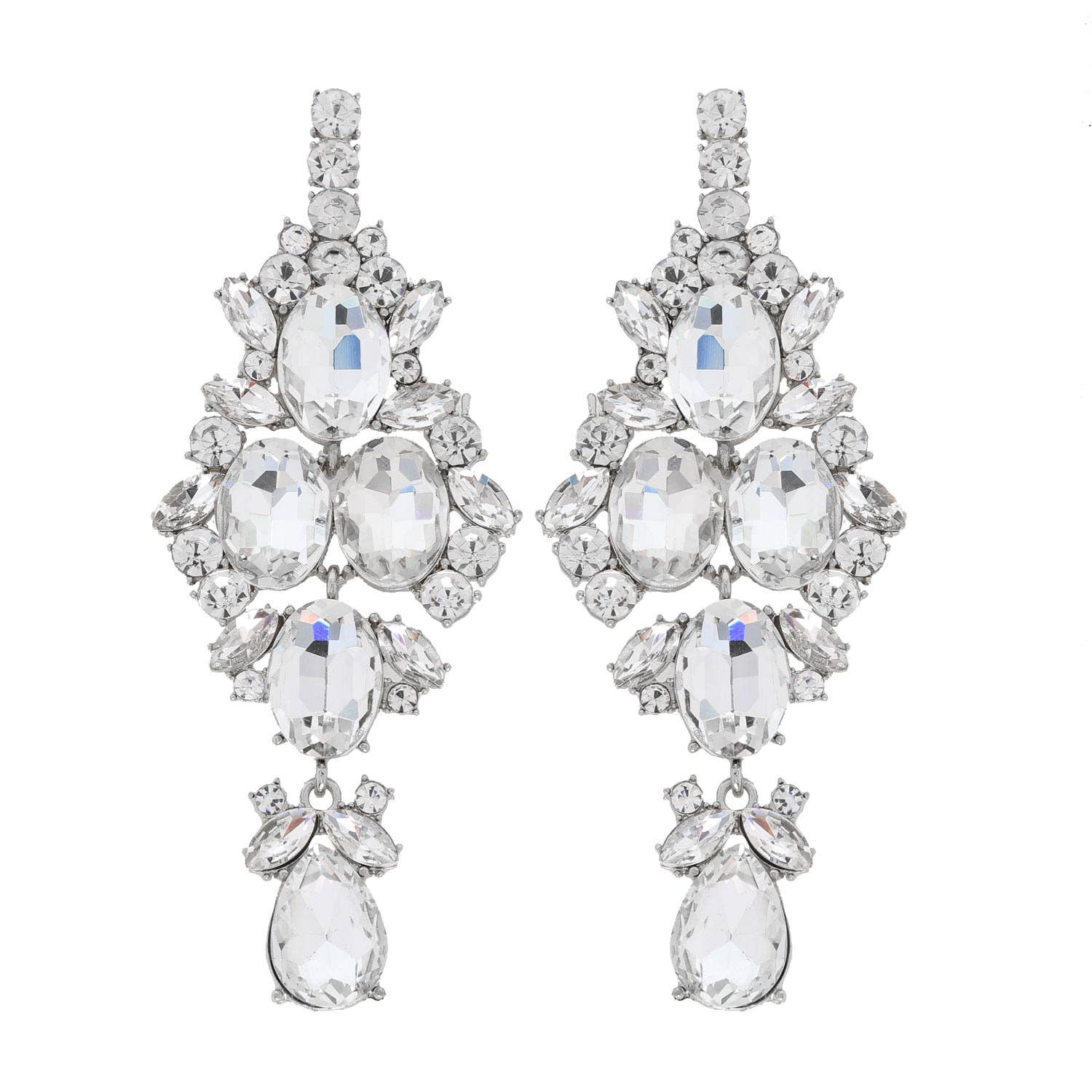 OVAL LINEAR PETAL CLUSTER PEAR VINTAGE ART DECO COCKTAIL FANCY ELEGANT CRYSTAL GEMSTONE BLING JEWELED STONE JEWELED GLAM EVENING DRESSY FORMAL PROM PARTY BRIDAL WEDDING STATEMENT LARGE BIG DANGLE LONG DROP EARRINGS