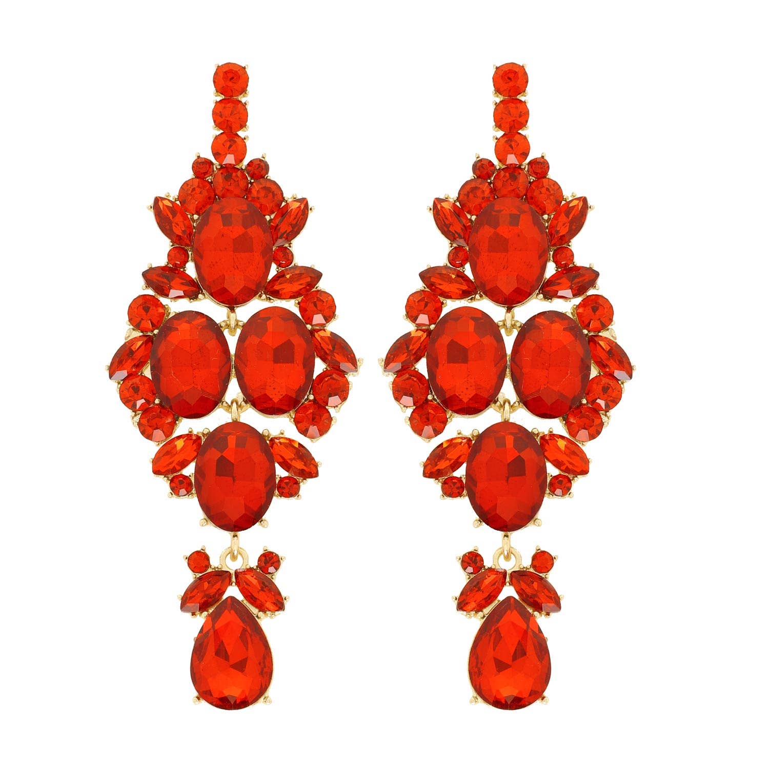 Crystal Gemstone Cluster Long Drop Earrings: Red ey12242grd