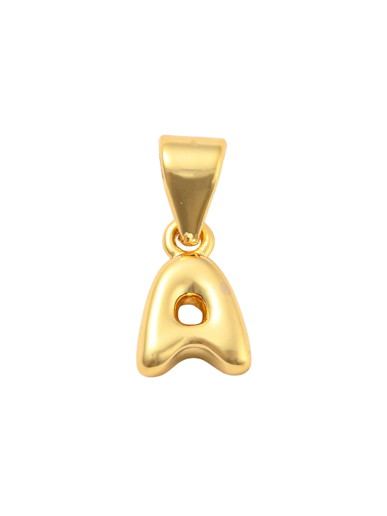 This Gold Mini 18K Bubble Letter "A" Charm adds a personalized touch to any necklace or bracelet. Plated in shiny gold, its playful, rounded design makes it a fun and stylish accessory. Perfect for creating customized jewelry or gifting someone special.
