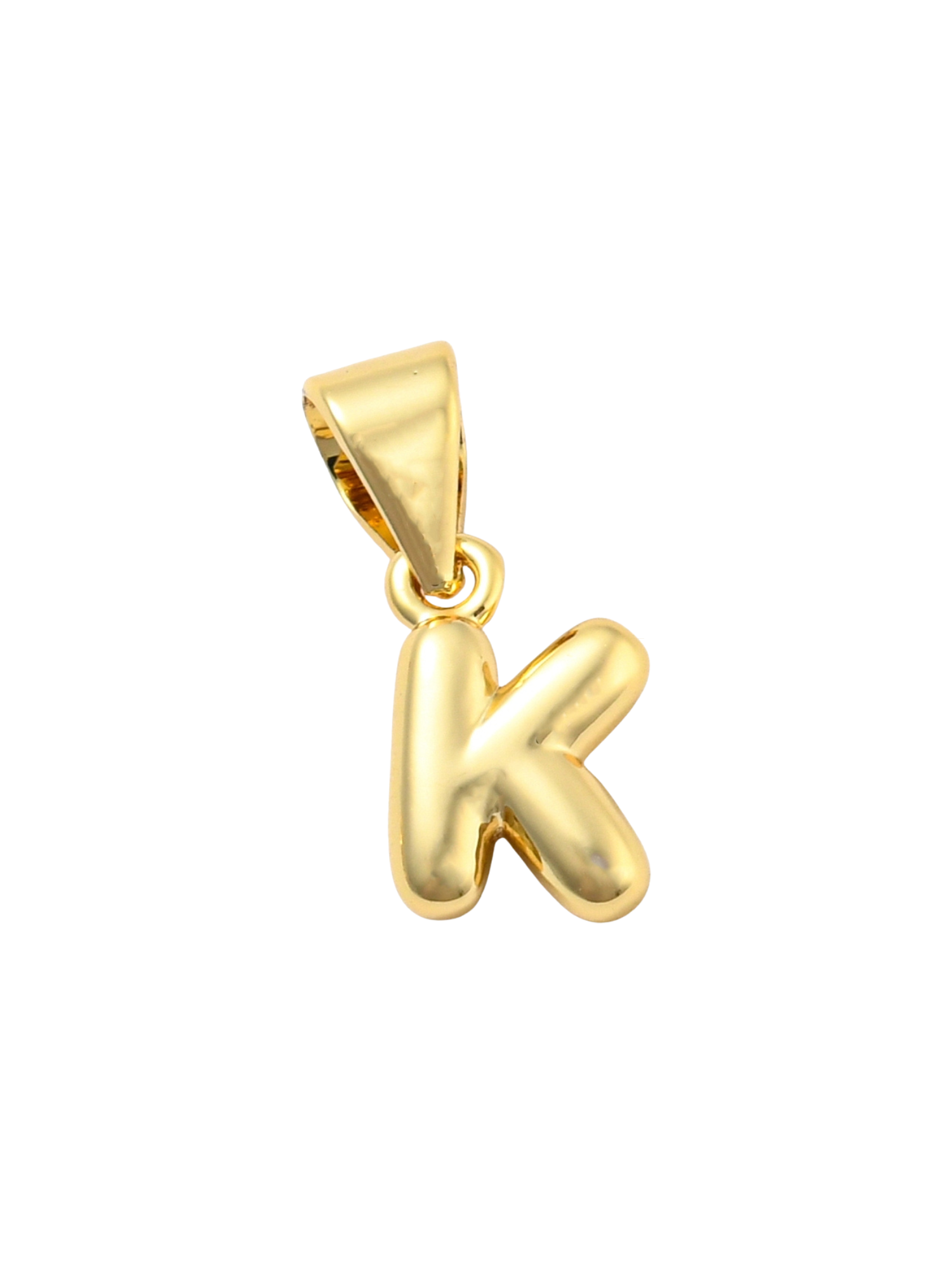 This Gold Mini 18K Bubble Letter "K" Charm adds a personalized touch to any necklace or bracelet. Plated in shiny gold, its playful, rounded design makes it a fun and stylish accessory. Perfect for creating customized jewelry or gifting someone special.