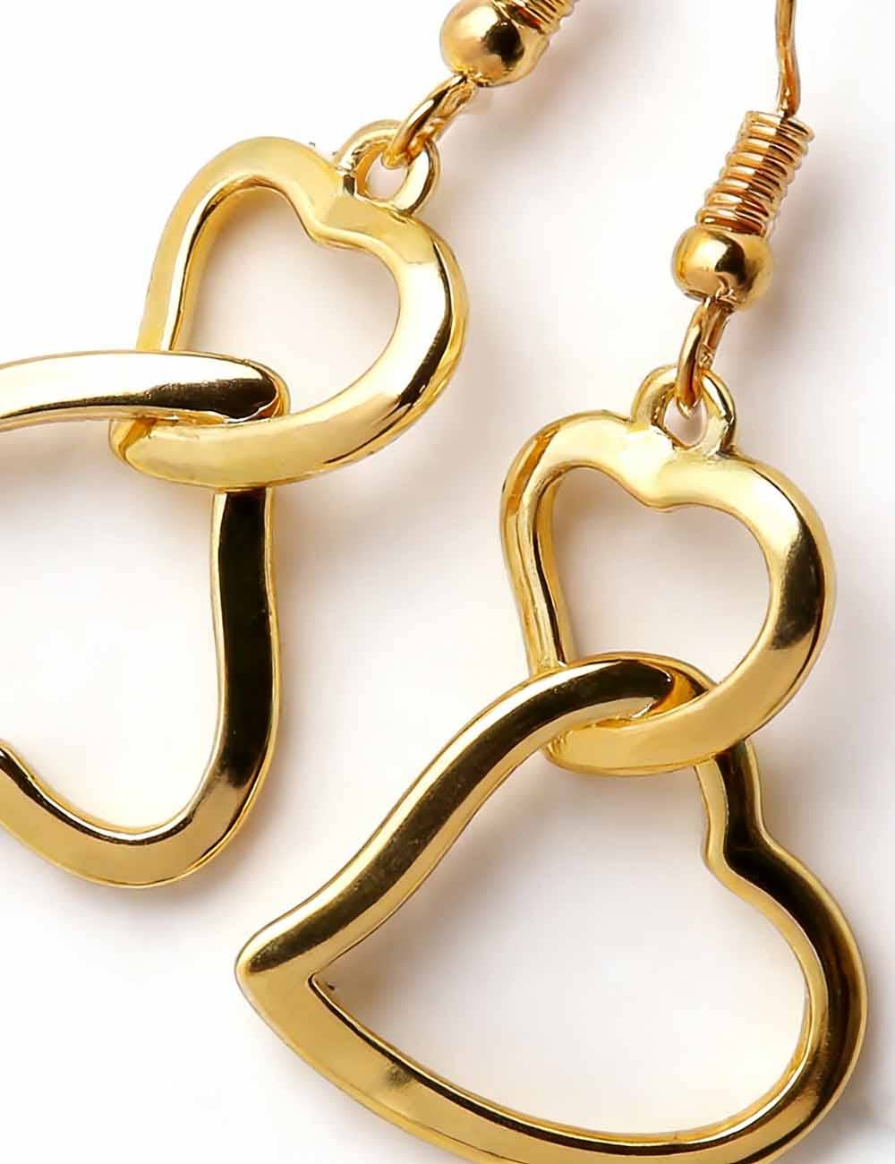 Ladies Valentine's Double Heart Hollow Pendant Earrings: Gold / One Size