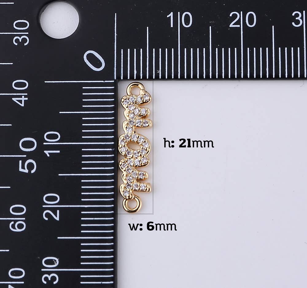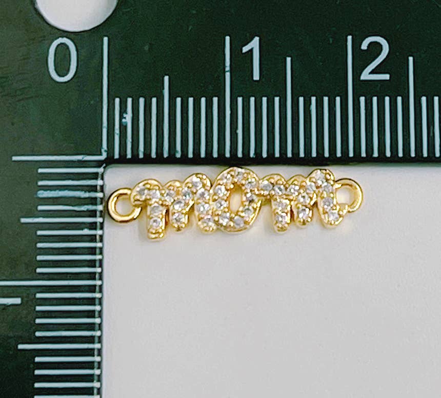 Micro Pave Mom Word Charm Connector in 18K Gold Filled CN394