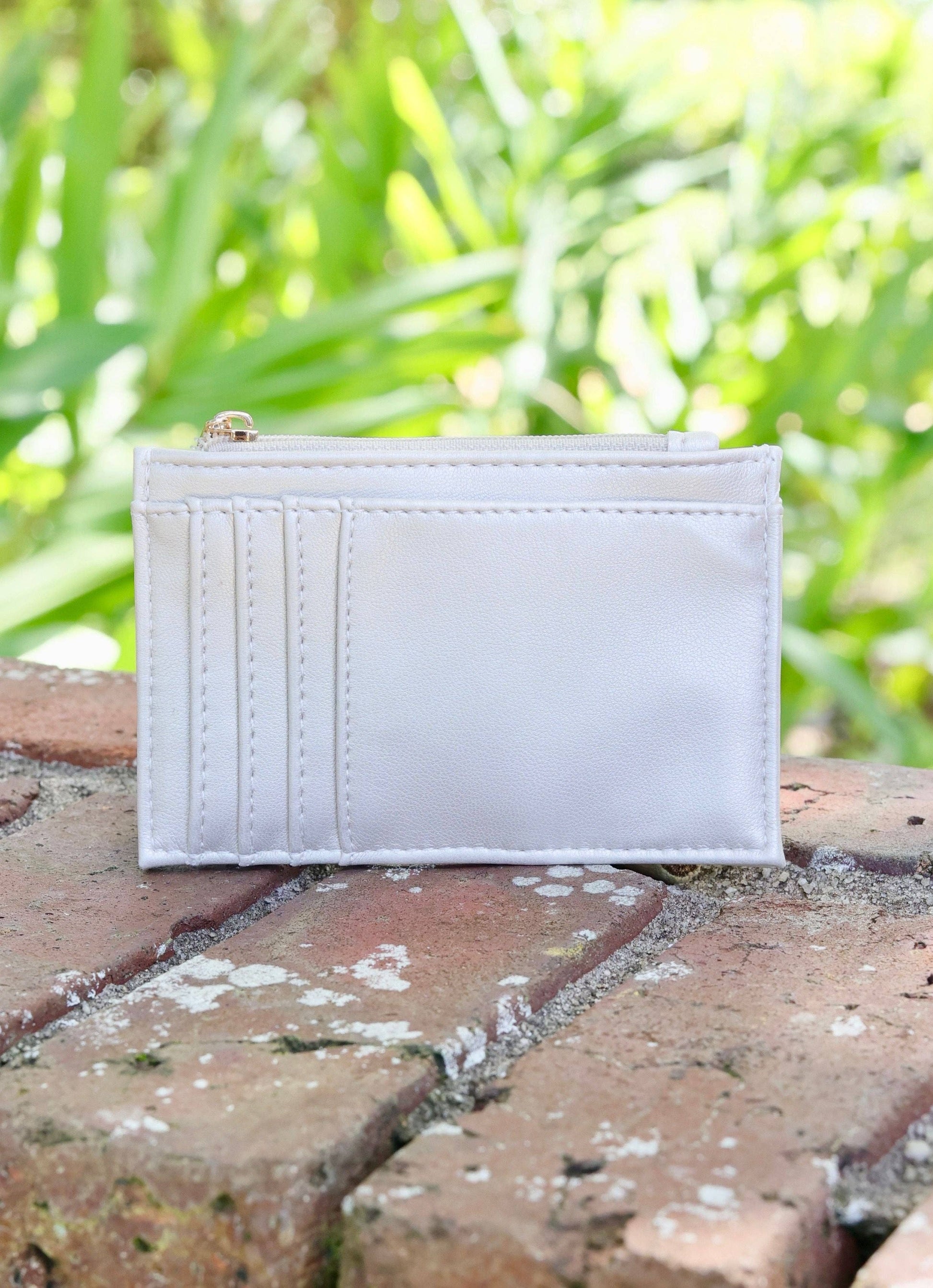 This wallet card holder is the perfect on the go accessory to have in your handbag. It has a slim silhouette and holds so many essentials. Each side of the wallet is identical, both showcasing card holder slots and space for cash. It also has a tip zipper closure to secure coins as well.