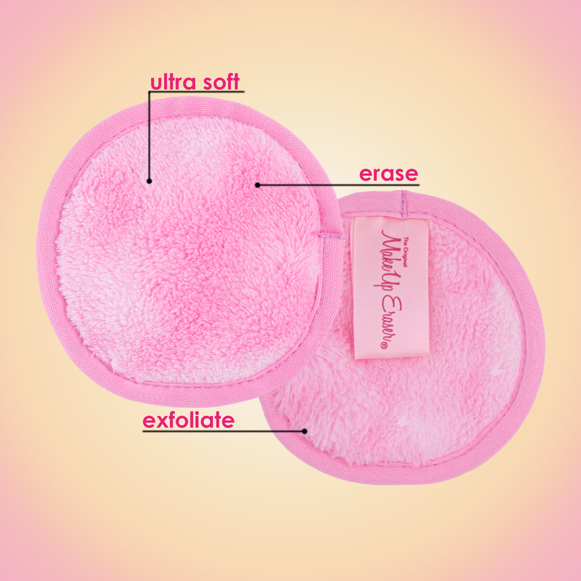 Erase all makeup with JUST WATER™ including waterproof. Our patented, water-activated, cloud-soft fibers gently & easily remove all makeup & sunscreen from pores. 2 in 1 benefit: one side erases makeup & one side exfoliates skin.
